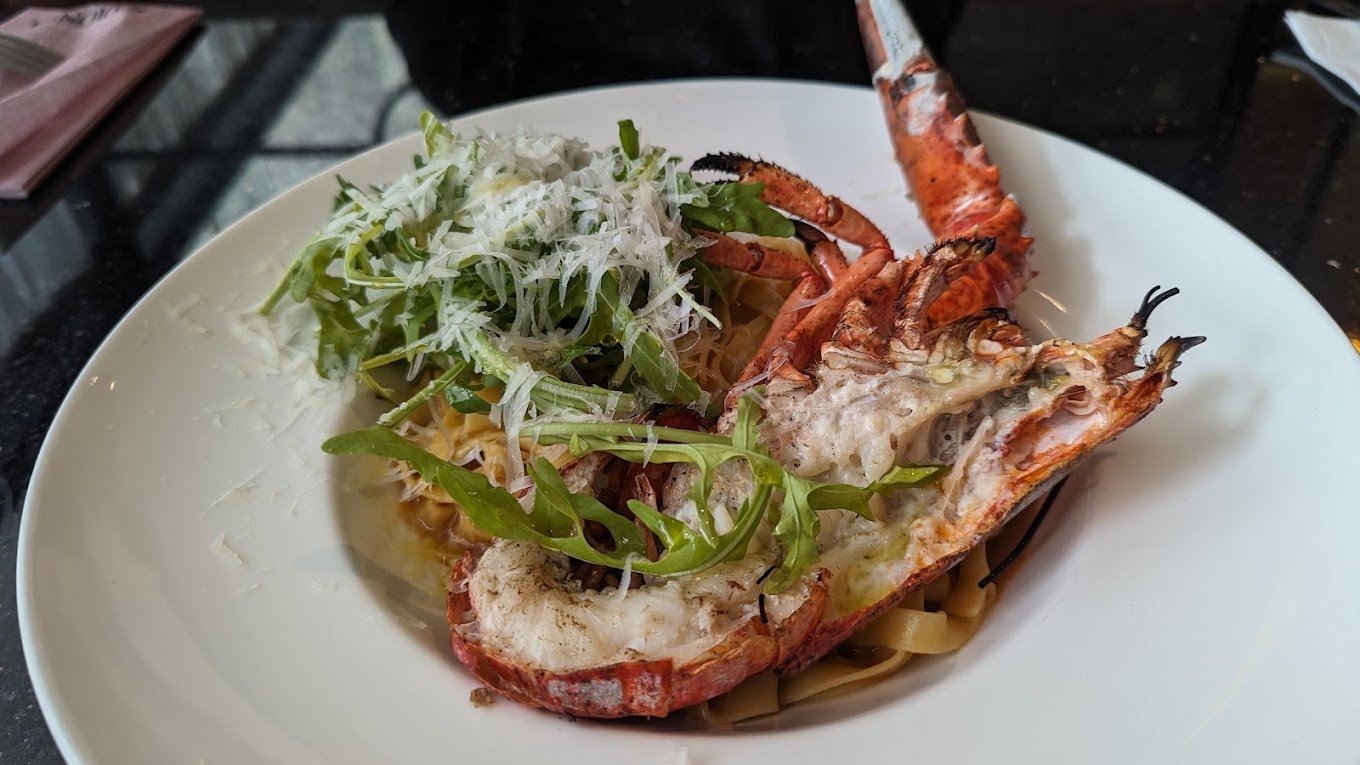 Australia Rock Lobster Tagliatelle ($56) – Grilled half-Australian rock lobster, lobster Americaine sauce.
